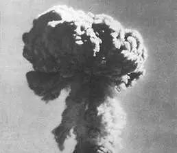 1964年10月16日15时整,我国西北核武器研制基地上空闪过一道强烈亮光,惊天动地的巨响之后,巨大火球转为蘑菇云冲天而起。中国第一颗原子弹爆炸成功了!